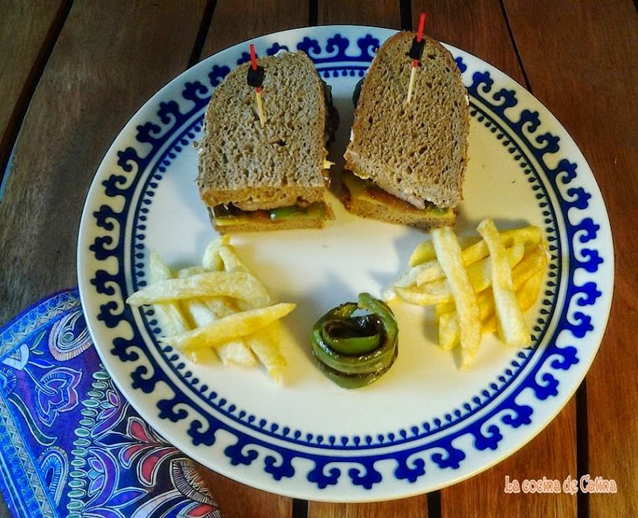 En el otro trozo de pan, extendemos la mostaza y si os gusta la mahonesa, mezclar una cucharadita de mostaza con dos de mahonesa y extenderlo sobre la otra rebanada de pan. Esta rebanada la colocamos cubriendo la preparación anterior, y ya está listo, una buena opción para la cena, que podemos acompañar con unas patatas fritas o una ensalada.