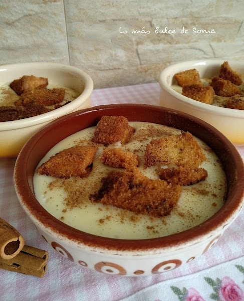 Las volcamos en una fuente o cuencos individuales, le ponemos trocitos de pan frito y las espolvoreamos con azúcar y canela. Dejamos enfriar y listo.