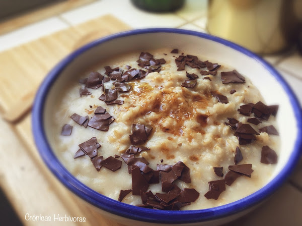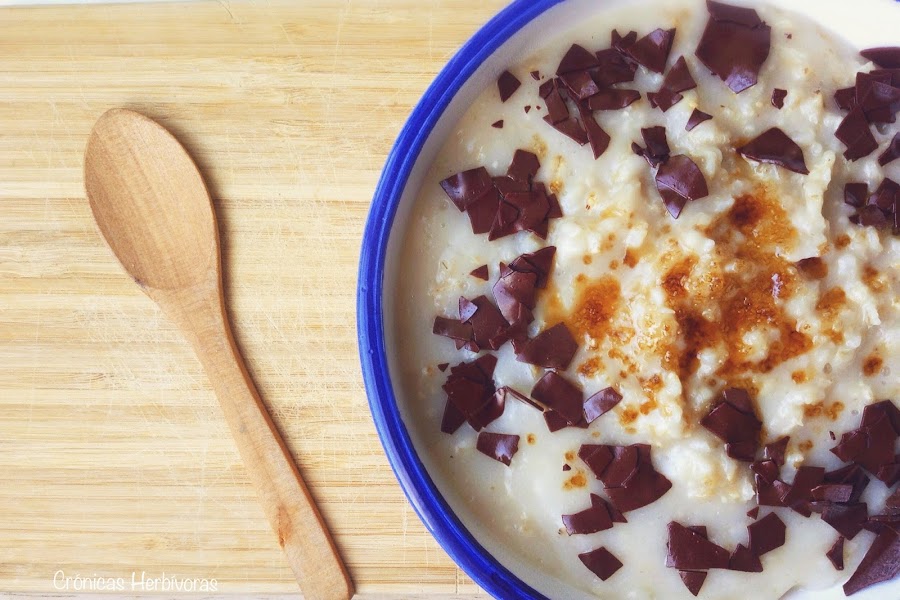 La primera vez que hice gachas me encantaron (podéis ver la receta aquí). Son muy saciantes, se preparan muy rápido y están riquísimas. Aprovechando que compré el otro día virutas de chocolate negro y tenía leche de coco y arroz, pensé que esta combinación se merecía un intento. Y ha quedado así.