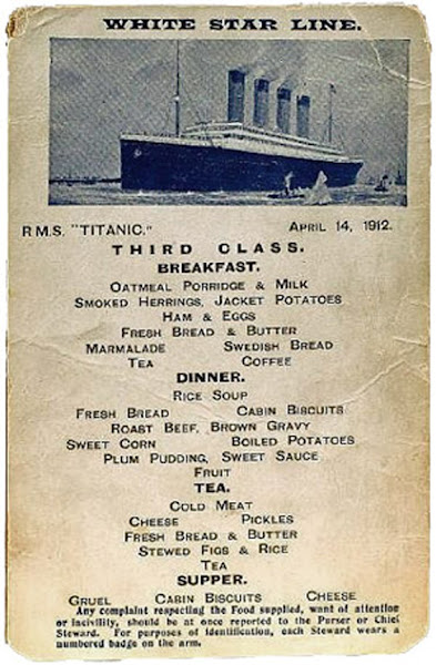 Casualmente me he topado con el menú que se servía a los pasajeros de la tercera clase del Titanic, gracias al evento mensual que organiza mi compi de TodoCooking, y cuál ha sido mi sorpresa cuando he visto que este era uno de los platos del desayuno!. De ahí el título del post. La avena es un cereal humilde, económico, asequible para todos bolsillos, pero en la actualidad ha adquirido más "caché" al incluirse en recetas de la onda fitness, healthy y demás.
