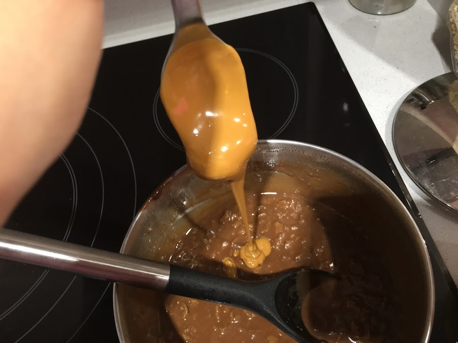 3.Justo cuando nuestras gachas estén listas, paramos el fuego y añadimos la cucharada de crema de cacahuete de mybodygenius.