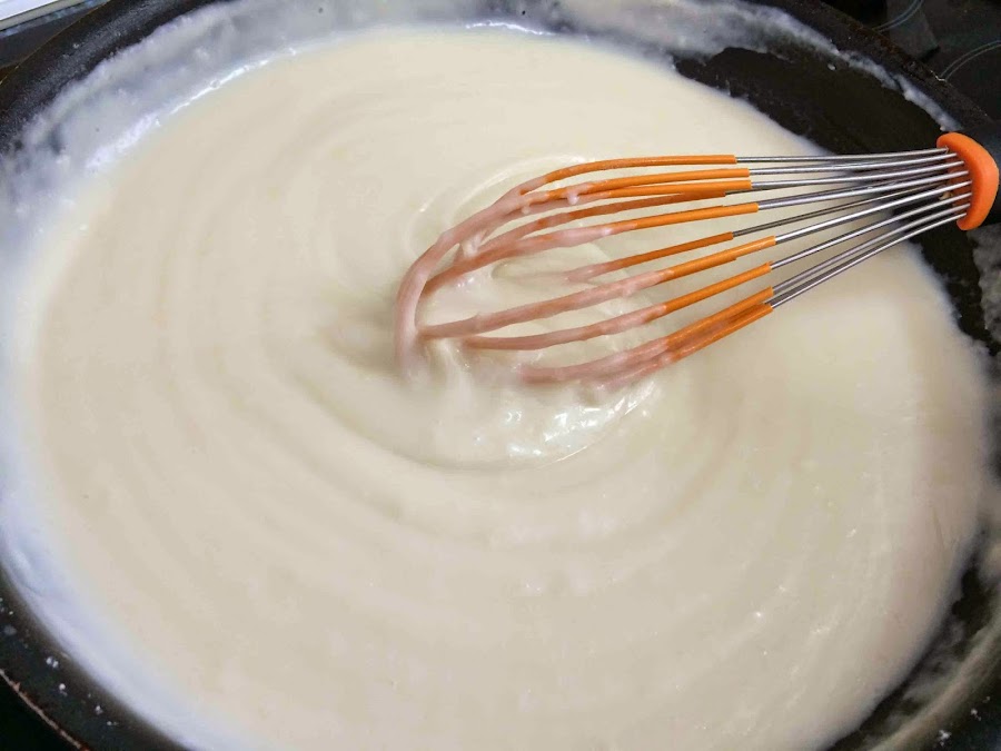 Ponemos a fuego medio sin dejar de trabajar las gachas con la ayuda del batidor hasta que tengamos la consistencia propia de este postre.