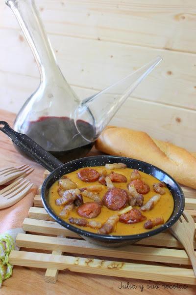 Las servimos con la panceta y el chorizo por encima, aunque yo suelo ponerle unos pocos dentro en los últimos minutos de cocción para que tomen mas sabor.