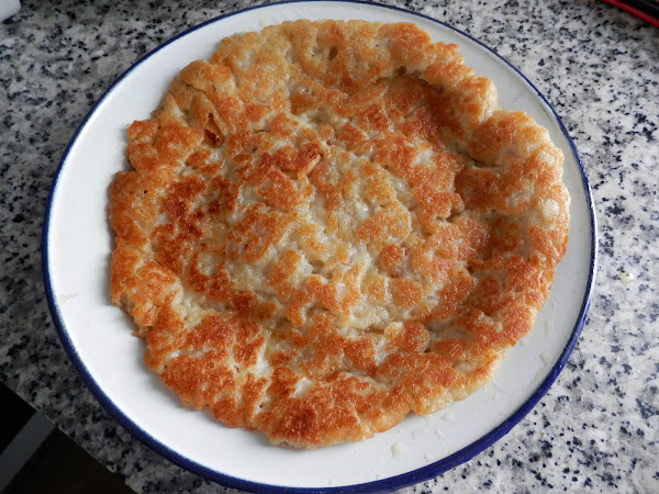 Cuando ya veais que todo está muy bien tostadito, dais la vuelta completa a las gachasmigas y las dejáis tostar por el otro lado.