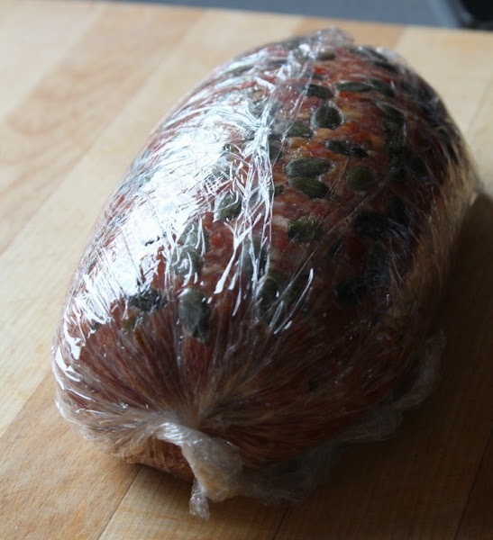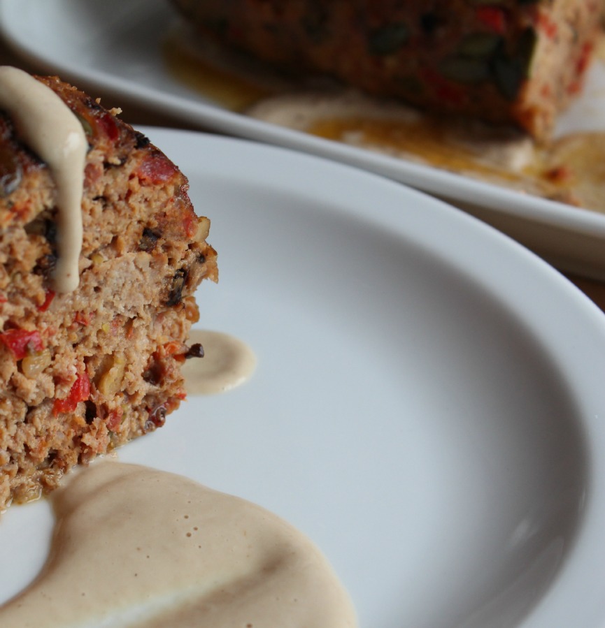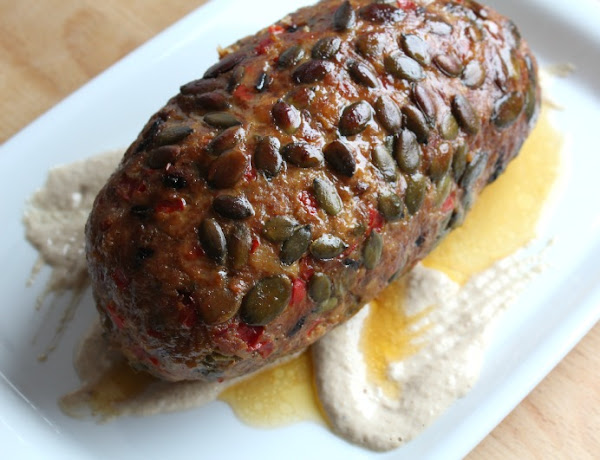 Pinta una fuente, con la salsa de boletus, colocas la galantina encima.... ¡Y a la mesa!