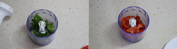 Picamos el pimiento verde y el rojo con la picadora en trocitos pequeños.