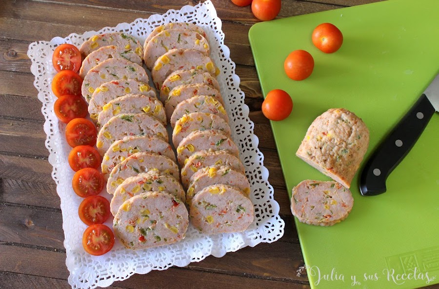 Las más comunes son de pollo o de pavo. Hoy vamos a hacer una galantina de pollo aderezada con pimientos y maíz dulce. Un entrante, cena o picoteo muy sano y muy sencillo, que preparamos con antelación y con el que quedaremos muy bien ante nuestros comensales.