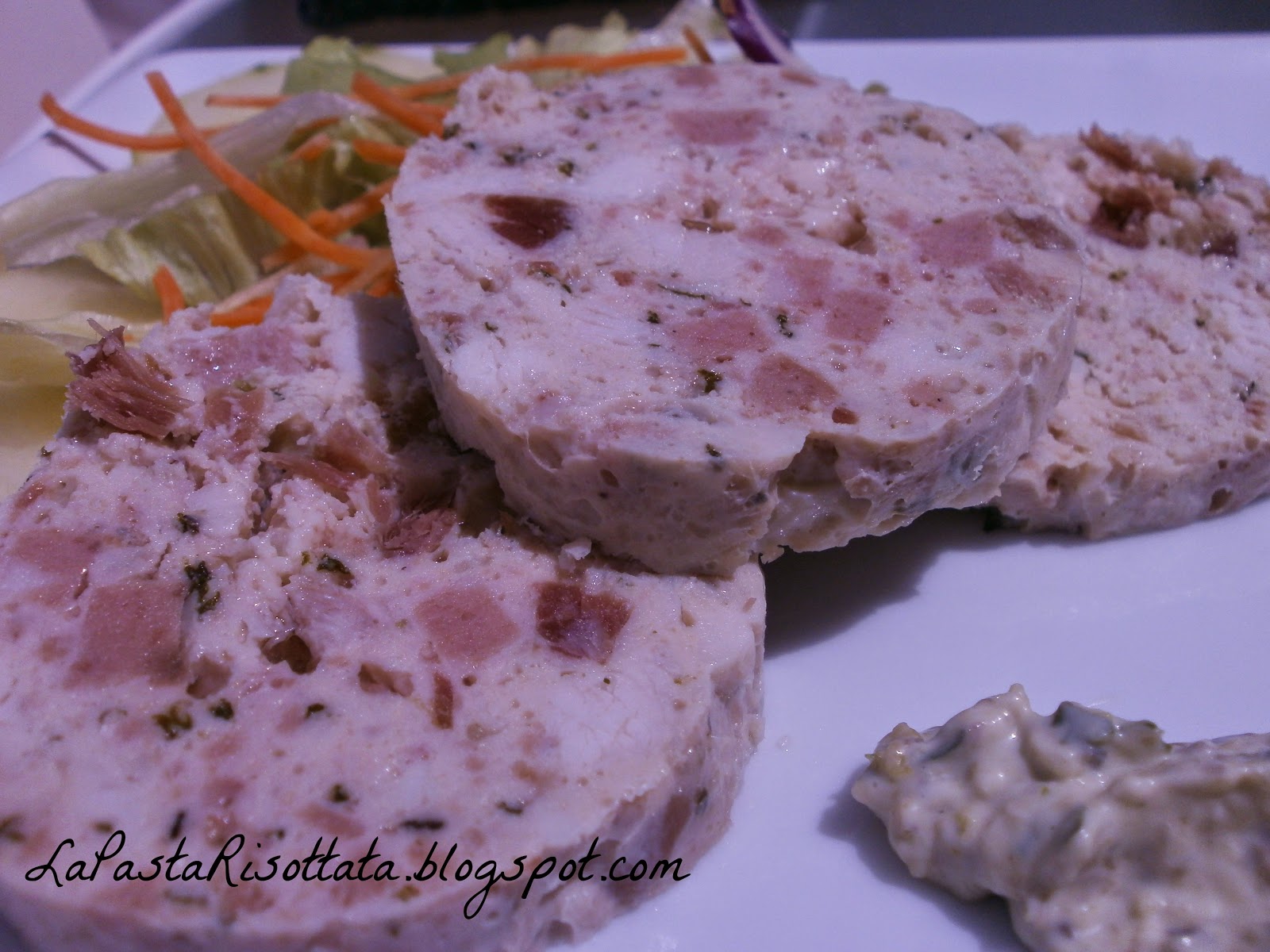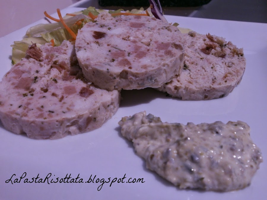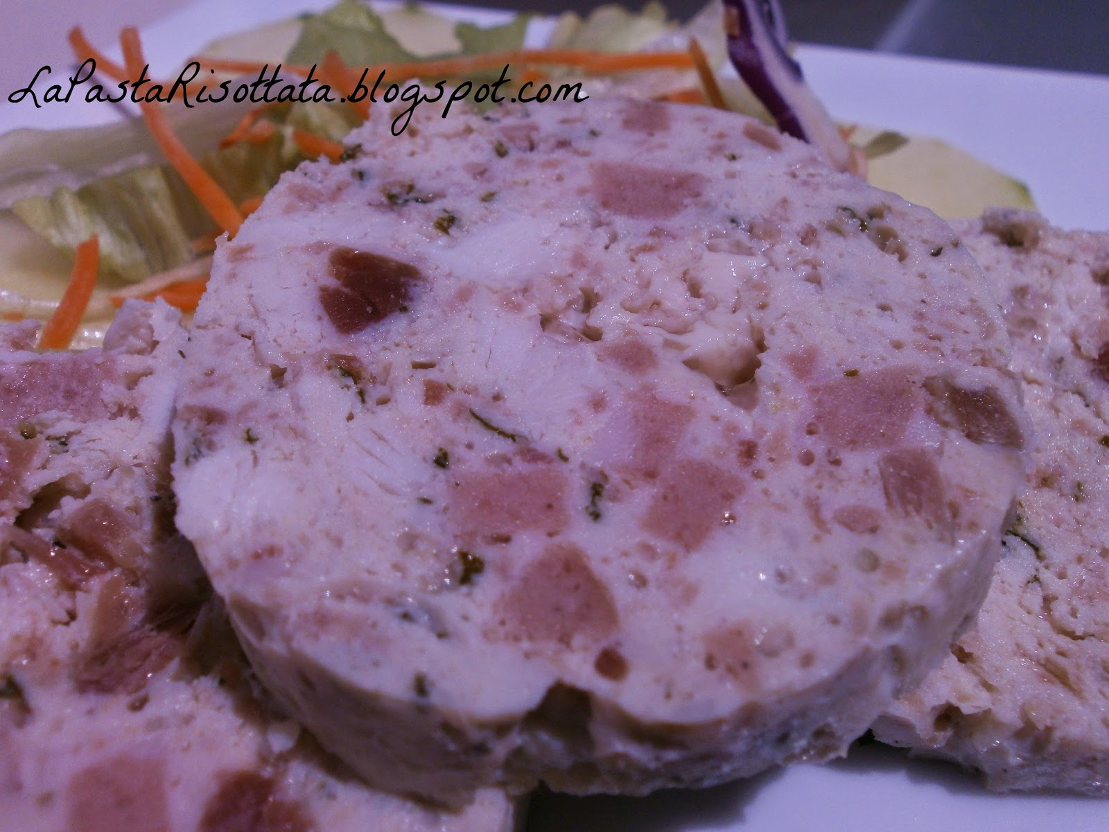 Oggi vi propongo una Galantina di Pollo;la ricetta l"ho trovata su un vecchio numero di Sale & Pepe. Noi l"abbiamo divorata;é ottima.