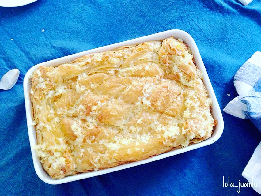 Transcurrido el tiempo de horneado, sacamos el Galatoboureko del horno.