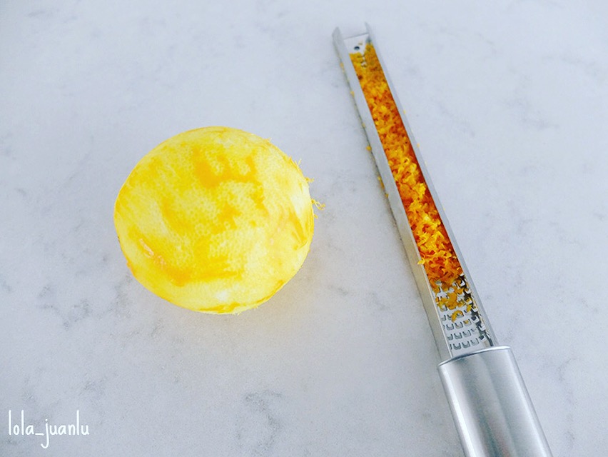 Mientras el pastel se está horneando, vamos a preparar el almíbar o jarabe. Rallamos la cáscara de un limón y reservamos.