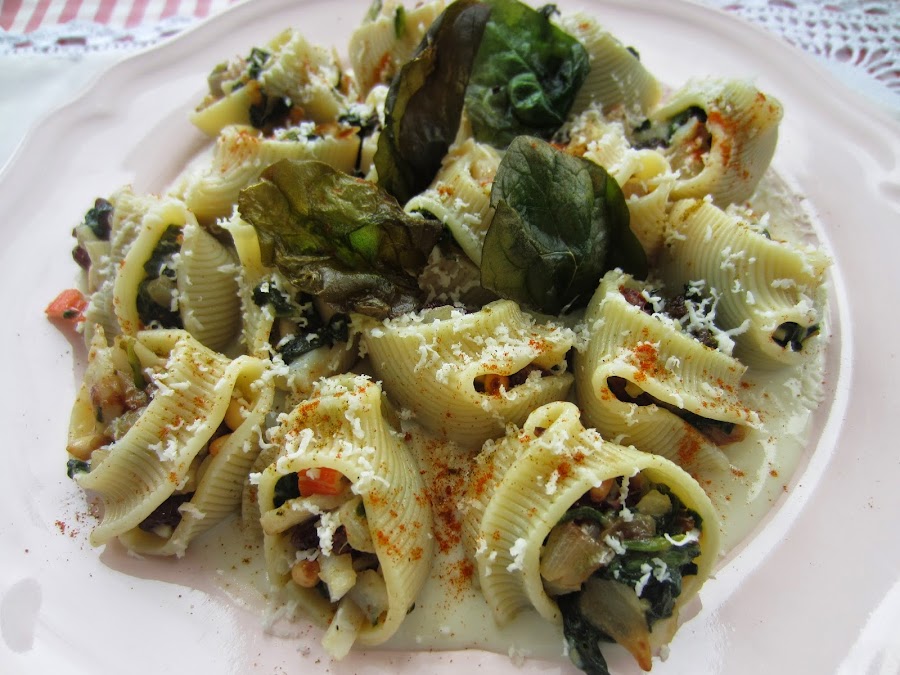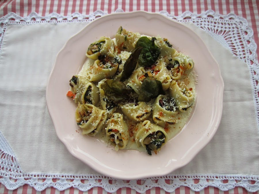 Si no quereis tener que ir rellenando galet, por galet, podeis hacer canelones o lasaña, con la misma receta. Es mucho más rápida la elaboración y queda genial también.