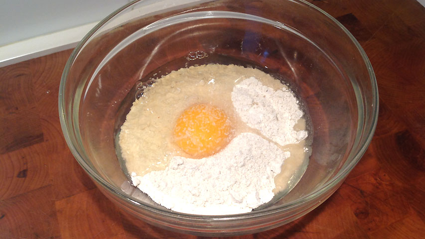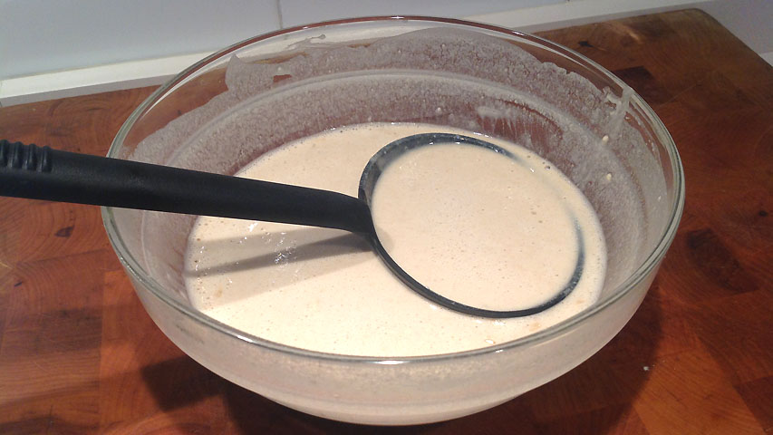 Al día siguiente la harina ha absorbido bien la mezcla de huevo, agua y sal y está lista para hacer los crepes (galettes).
