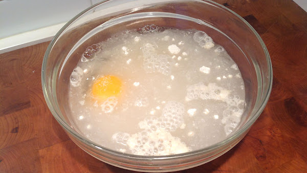 Se añade el agua y se mezcla todo con una varilla. Debe quedar una masa líquida y sin grumos.