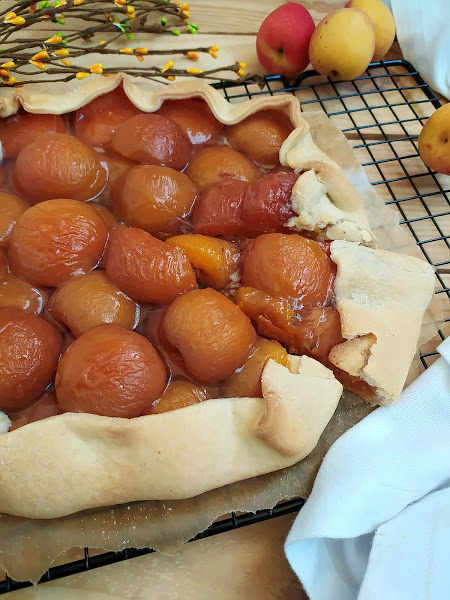 Me ha gustado mucho el contraste entre la masa quebrada y el albaricoque. Al ponerlos en mitades ha quedado bastante entera la fruta, y no en plan papilla que es un riesgo que se corre en este tipo de recetas.