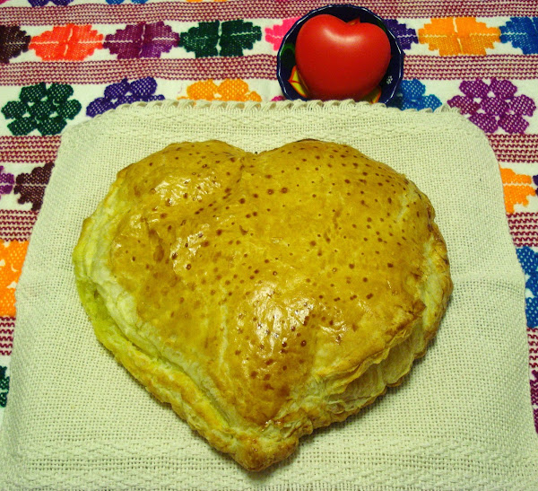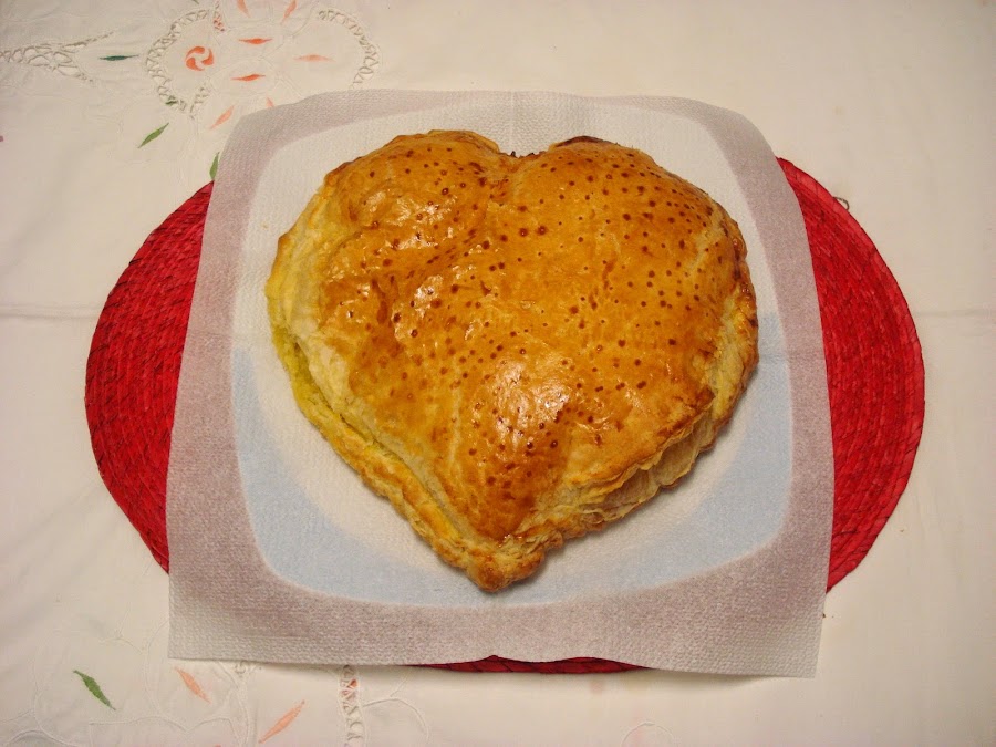 Para ello, nada más fácil, que hacer una plantilla dibujando un corazón en un papel y recortándolo. La puse sobre la plancha de hojaldre y con la ayuda de la punta de un cuchillo dibujé el corazón. Lo mismo para la otra plancha teniendo cuidado de que luego encajaran.