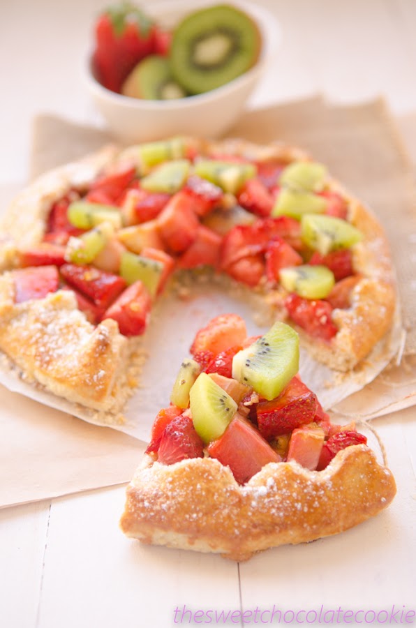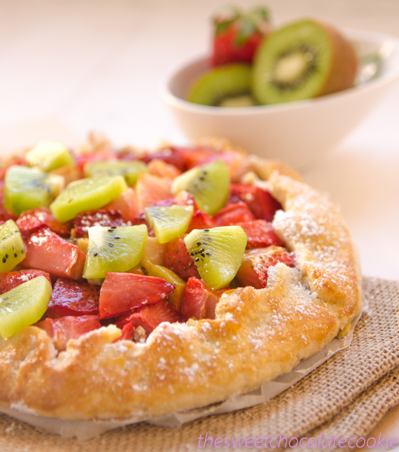 Si queremos añadir kiwis será una vez sacada la galette del horno ya que si no pierden su color verde y se ponen marrones.