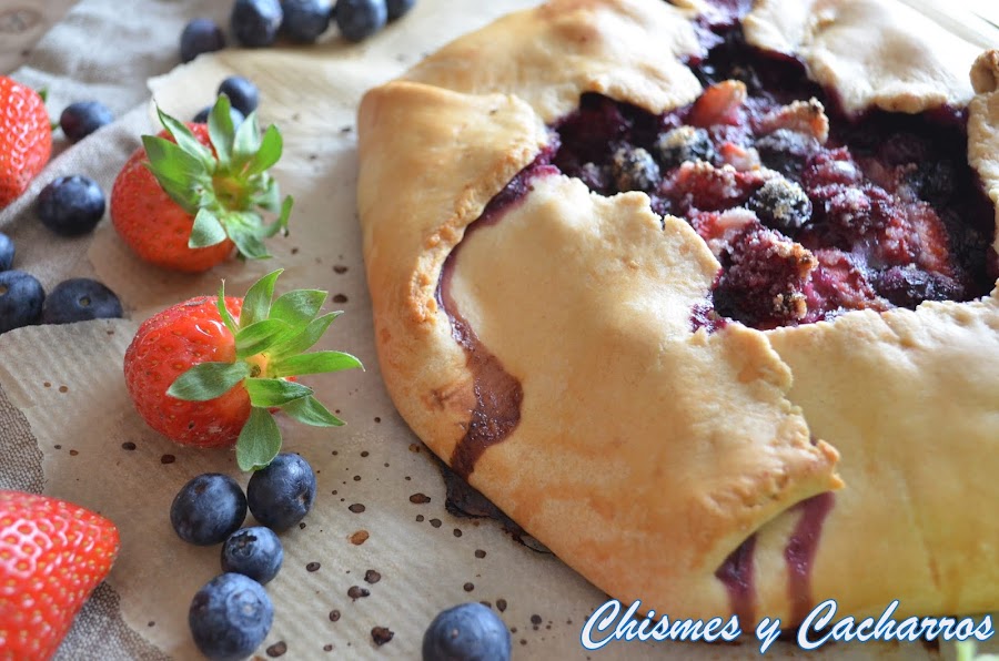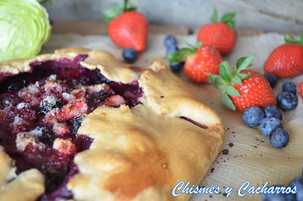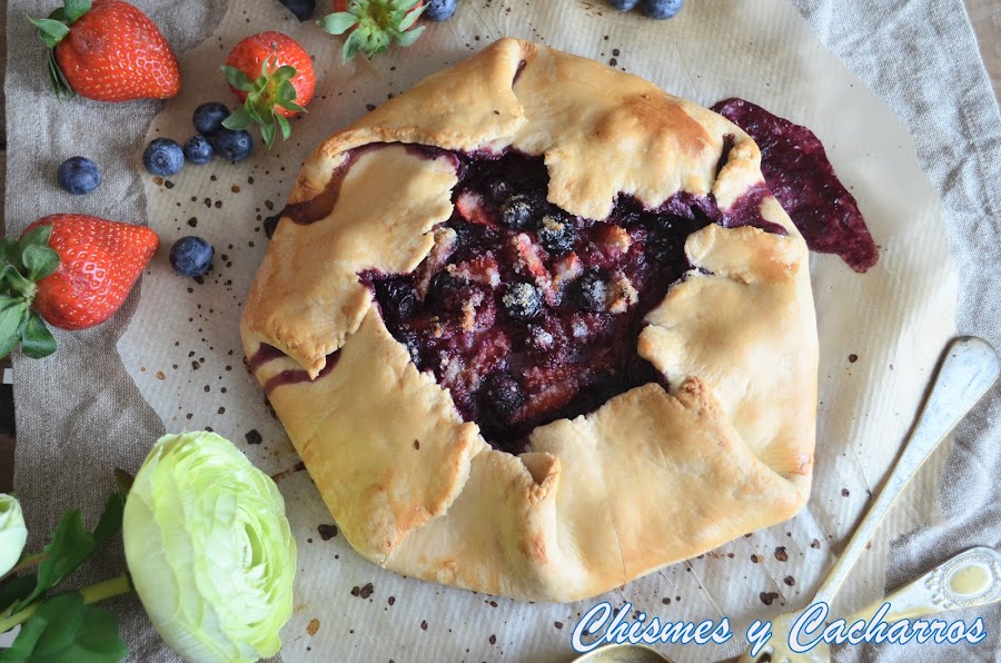 Hace unas semanas me regalaron unos arándanos y justo ese mismo día había comprando frambuesas y fresas para decorar la tarta del desafío del mes anterior. Con esas tres frutas me apetecía hacer una tarta de frutos rojos y me acordé de la Galette, se hace con masa quebrada que es muy fácil de hacer en casa.