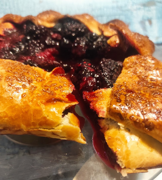 Yo he usado moras, arándanos y frambuesas que es lo que tenía en casa, pero la galette con fresas está también buenísima.