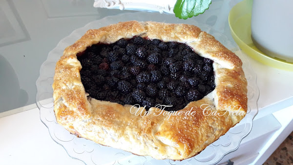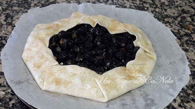Extender la lámina de hojaldre y poner en el centro la mezcla de moras.