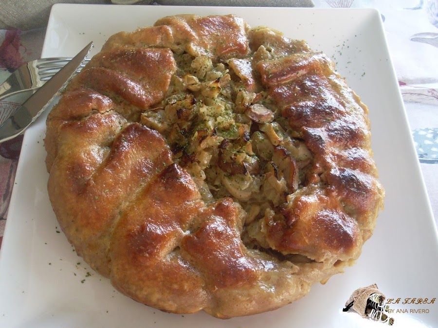 Plegar los borde encima de la mezcla de setas, sin llegar a tapar del todo