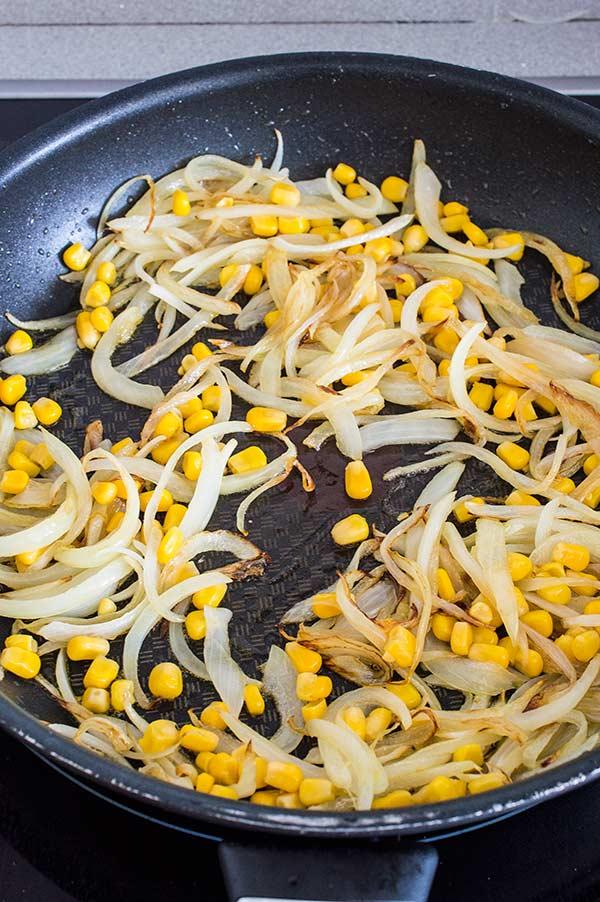 Incorporamos el maíz y sofreímos 1 minuto mas. Reservamos