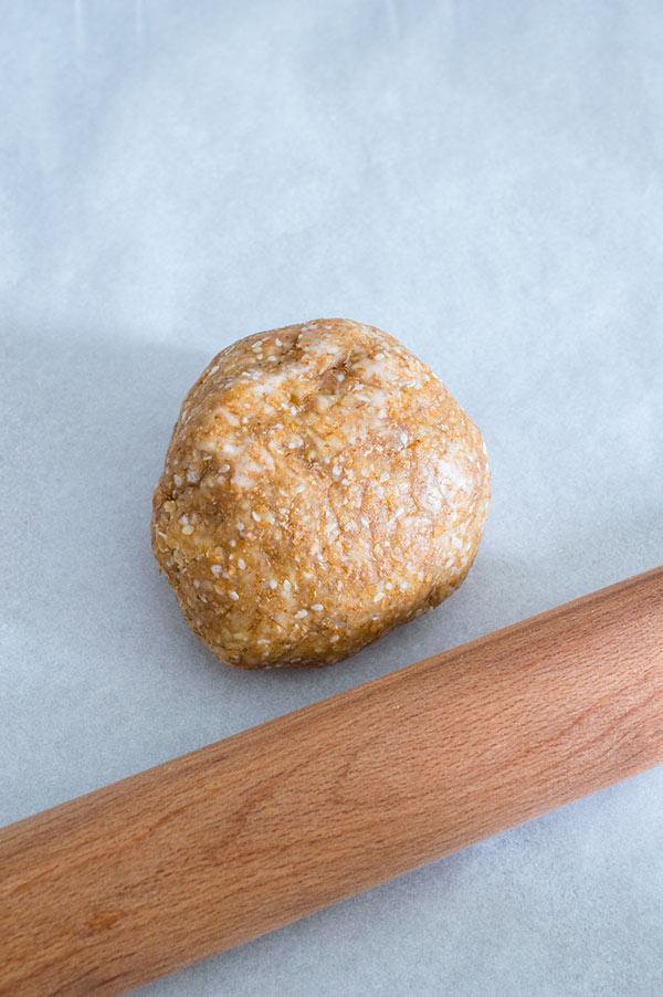 Estiramos la masa con la ayuda de un rodillo sobre un papel de horno.