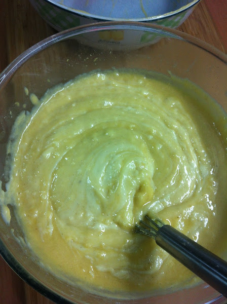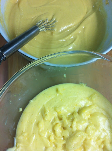 Se baten las yemas con la maizena y se va agregando la leche infusionada con vainilla, mezclando bien todo.