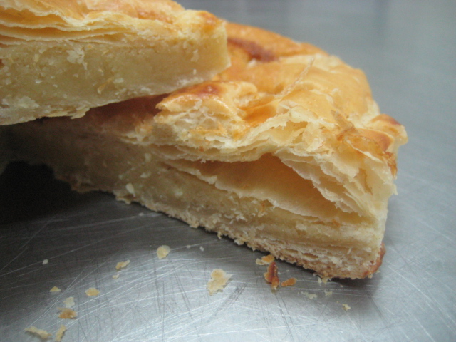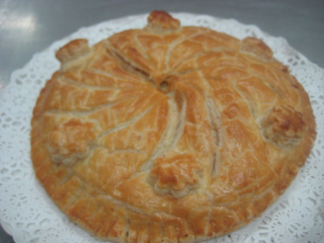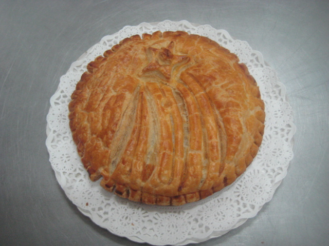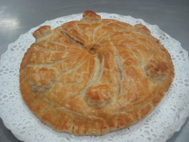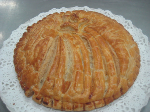 Preparación: Para hacer la crema franchipán o frangipane, batir la mantequilla con el azúcar hasta que esté cremosa. Luego ir añadiendo los huevos uno a uno, de manera que hasta que no esté bien incorporado uno, no se agrega el otro. Yo lo he hecho con la pala mezcladora de la batidora y ha quedado muy bien. Luego añadir las almendras mezcladas con la harina y el azúcar avainillado. Batir hasta que esté todo mezclado y reservar. Si se desea se puede emplear esencia de almendras y se añaden unas gotitas al batido de mantequilla. Estirar dos laminas de hojaldre sobre la superficie enharinada y cortar dos círculos, uno de 20 cm y el otro de unos 25 cm. El más pequeño lo ponemos en la bandeja del horno y con el huevo batido del acabado, pintar un anillo de unos 2 cm junto al borde de la masa base. Poner el relleno o crema frangipane dentro de dicho anillo, si queremos podemos usar una manga pastelera. Tapar luego con la otra lamina y presionamos todo el borde, justo por donde hemos pintado para sellar ambas partes. Con un tenedor cerramos toda la circunferencia de la galette. Hacer un agujerito en el centro de la tapa para que la masa saque el vapor, pincelar con huevo y refrigerar durante unos 30 minutos. Precalentamos el horno a 200º con calor arriba abajo. Sacamos la galette de la nevera y dibujamos sobre la masa, con ayuda de un cuchillo, la figura que nos guste. Pintamos con huevo de nuevo si fuese necesario. Hornear 10 minutos a 200º C. Luego bajar a 170-180 º C y seguir cociendo hasta que la masa esté dorada y haya subido. Sacar del horno la galette, subimos de nuevo a 200º C el horno, espolvoreamos con azúcar y horneamos un par de minutos más. Sacar del horno y colocar sobre una rejilla hasta el momento de servir.
