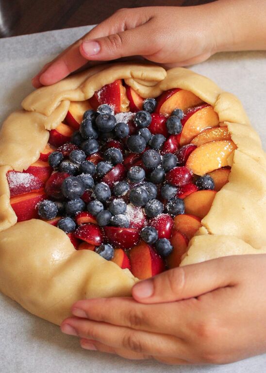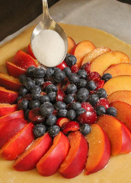Cada vez que veo tantas frutas juntas me entran ganas de hacer algo rico con ellas y esta vez he elegido hacer una galette rústica con nectarinas, arándanos y cerezas. Puedes cambiar el tipo de fruta utilizada según lo que más te guste.