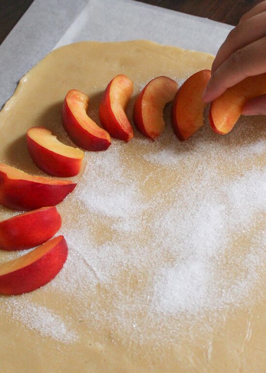 3. Espolvoreamos con las 2 cucharadas de azúcar restantes y cerramos los bordes sobre la fruta.
