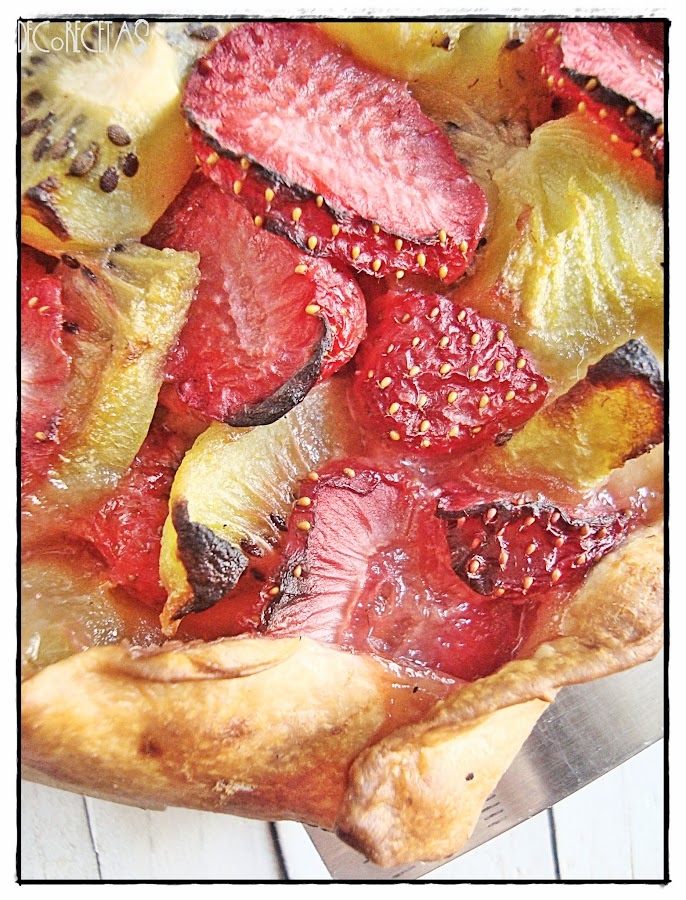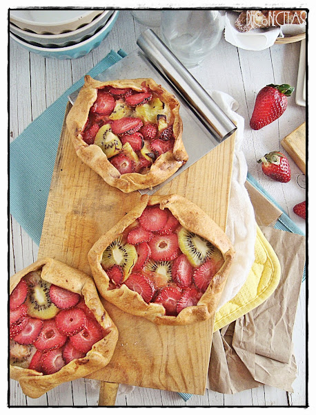 Dichas frutas se extienden sobre la masa que no tiene nada de complicado realizar y que queda excepcionalmente y si lo hacéis en versión mini como es mi caso mucho mejor