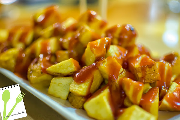 Para terminar, ya que era muy tarde cuando llegamos y la cocina ya la iban a cerrar, nos pedimos unas "Patatas Bravas", que, si sois amantes del picante, os encantaría, estaban realmente "picosas", pero no llegaba a dejarte la boca inútil y podías saborear las patatas, que estaban tiernas por dentro, aunque se echaba de menos un poco el crujiente de fuera.