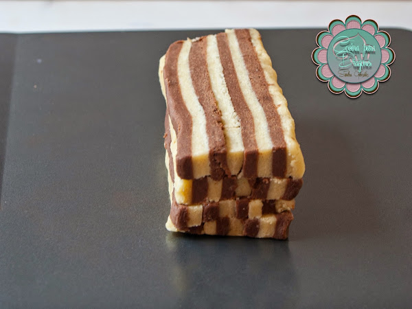 6) Repetimos la operación y reservamos en la nevera otra media hora. Sacamos del frigorífico y cortamos tiras de medio centímetro aproximadamente. Vamos alternando las tiras de manera que nos queden los cuadrados de colores diferentes como veis en la foto: