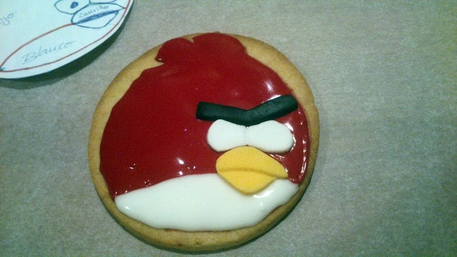 Ayer estuvimos de cumpleaños, Cesàr un amigo de mi niña, celebraba sus 7 años y quisimos contribuir con unas galletas de este pajaro que le gusta tanto.