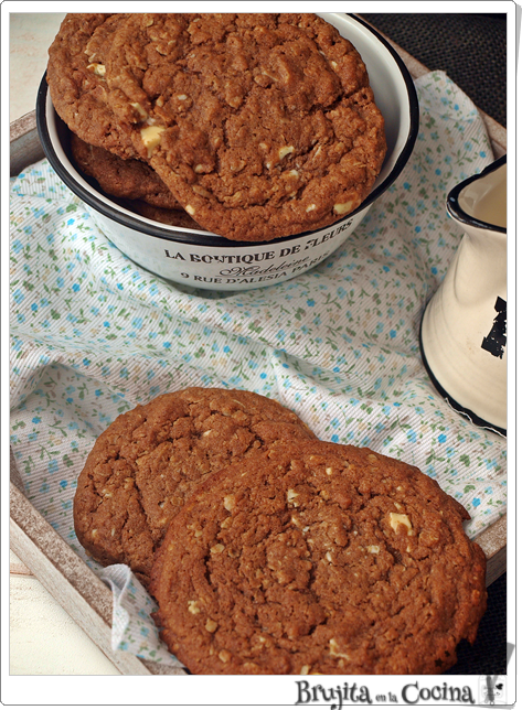 Añadimos la harina y lo batimos bien, después agregamos la avena y avenacao, mezclamos todo bien. Por último el chocolate blanco, mezclamos con lengua.