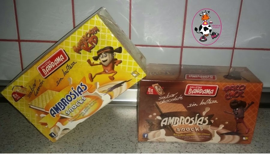 Ambrosías: La Ambrosía clásica de toda la vida. Galleta de barquillo rellena de una deliciosa crema con esencia de limón. Un placer para el paladar más exigente y una galleta suave y ligera para los niños. Ahora podemos disfrutarla en sabor chocolate.