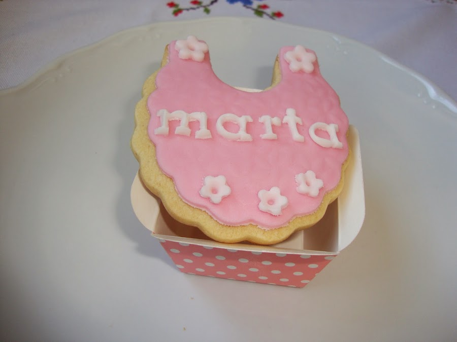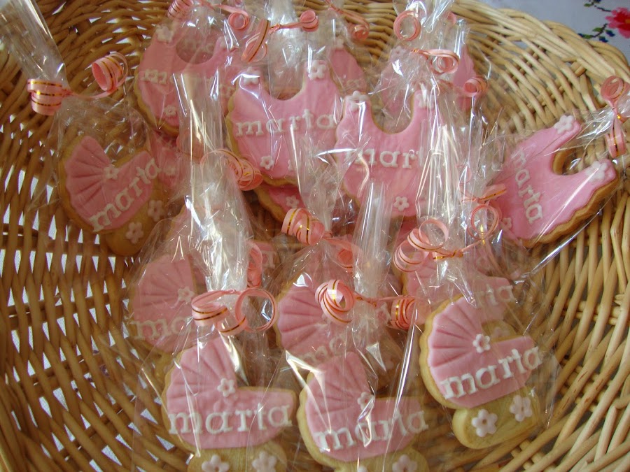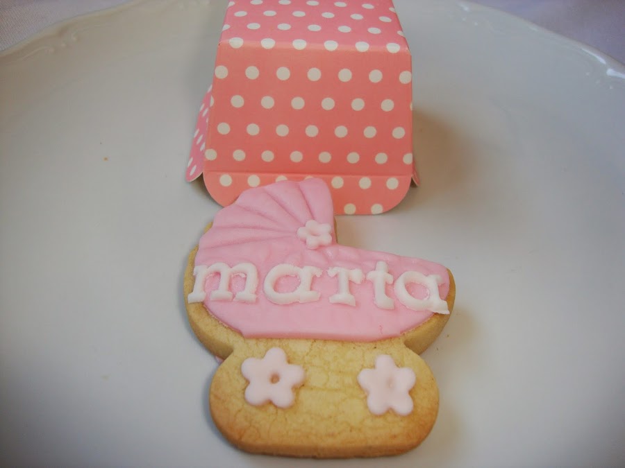 La galletas tenian forma de carrito de bebé y de babero de Marta: