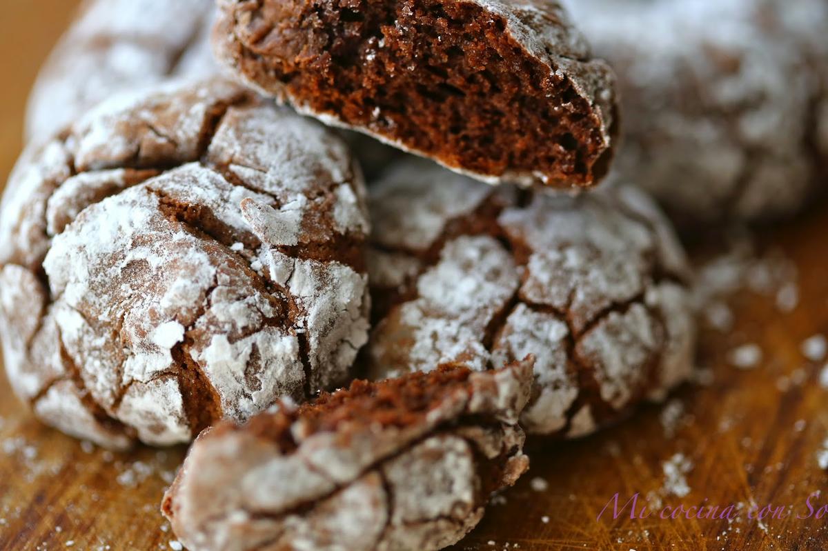 Sacamos la masa de la nevera, formamos bolitas y las pasamos por azúcar glass, procurando que queden bien impregnadas y las vamos colocando en la bandeja un poco separadas unas de otras. Horneamos durante 15-20 minutos, sacamos y dejamos enfriar.