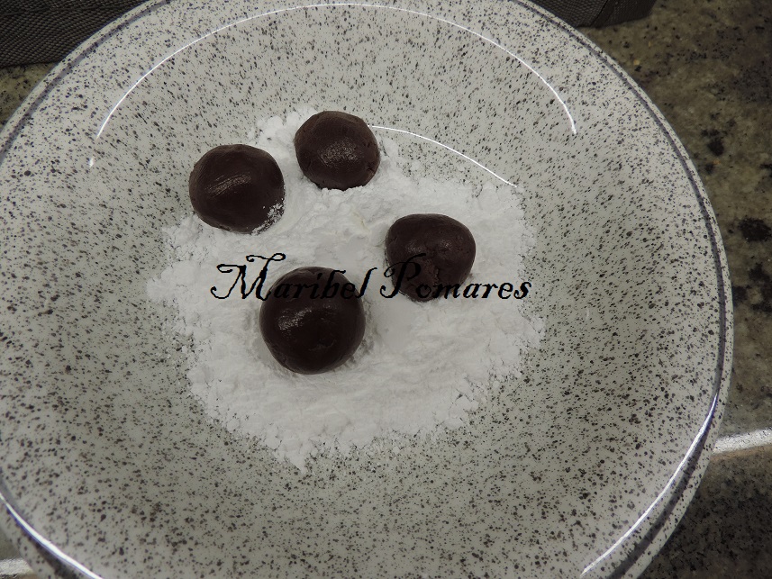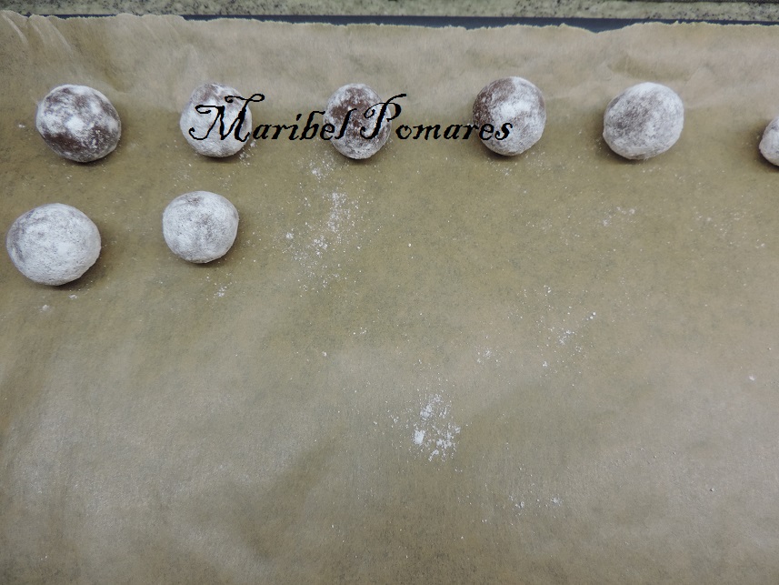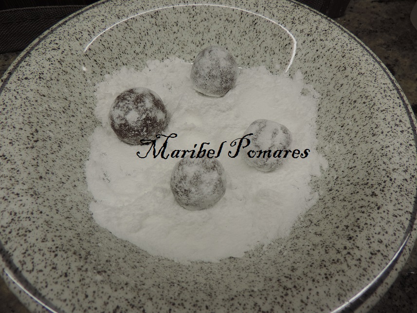 Hacemos bolas y las ponemos en un plato con azúcar glass.