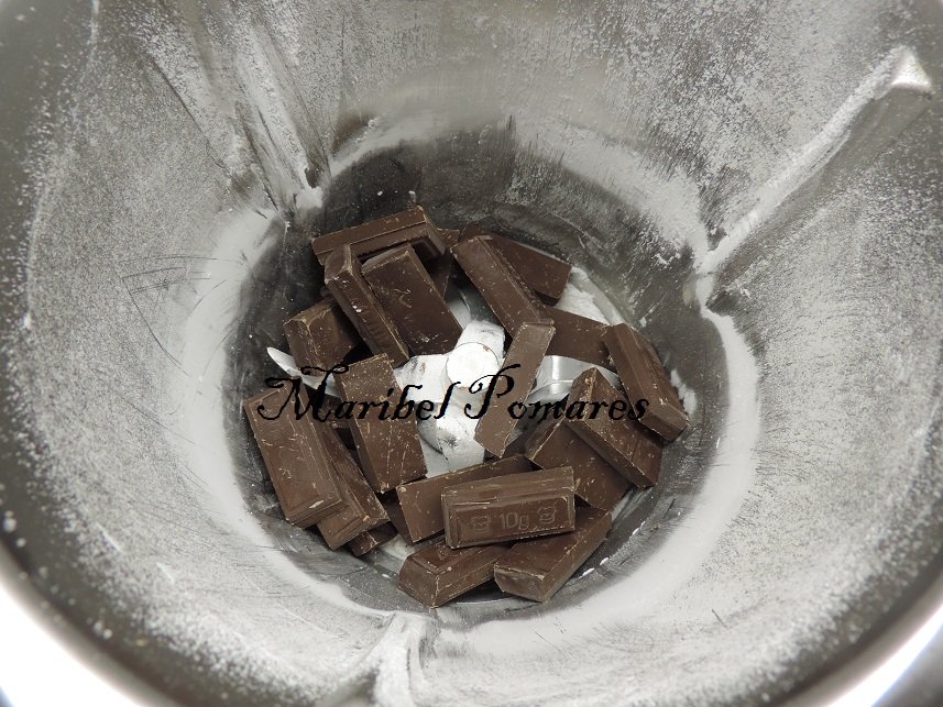 Sin lavar el vaso echamos el chocolate cortado en trozos.