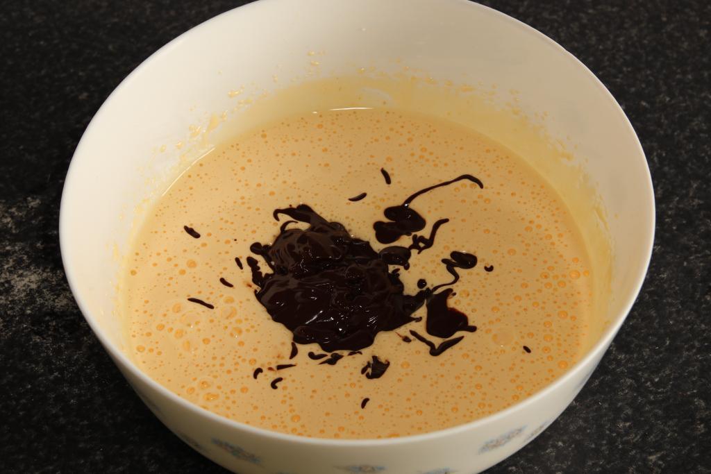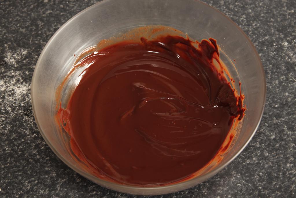 Derretimos el chocolate y la mantequilla en el microondas, una vez fundido dejamos atemperar.