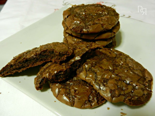 Cuando vi estas galletas de chocolate en el blog "Bizcochela" las hice inmediatamente y ya las he repetido en varias ocasiones porque son una verdadera delicia, crujientes por fuera y blanditas por dentro. En casa no pasan del primer asalto.