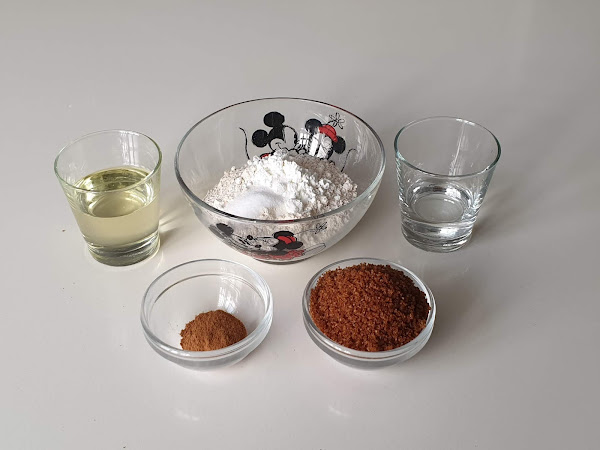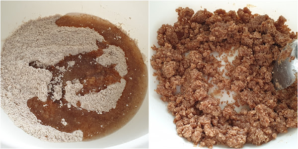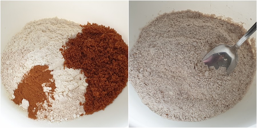 1. - Precalentamos el horno a 190º y ponemos en un bol todos los ingredientes secos y los mezclaremos bien.