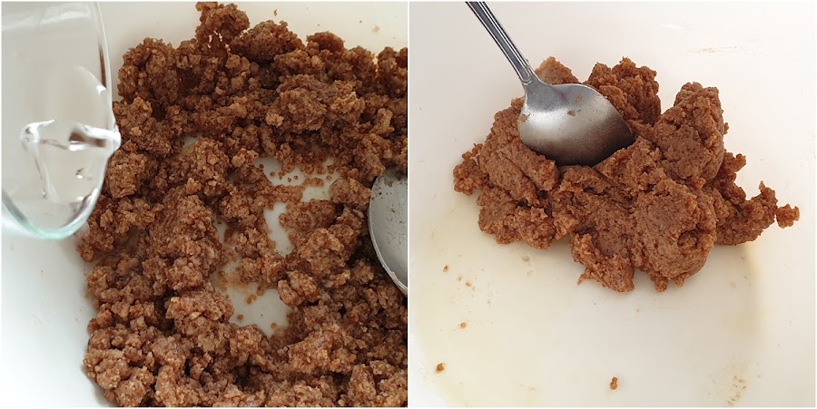 3. - Y en último lugar, añadimos el agua y segimos removiendo, hasta que se despegue por completo de las paredes del bol.