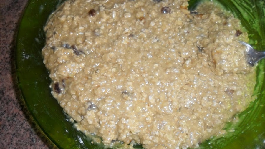 En un bol, poner la harina, avena, polvo de hornear,canela, pizca de jengibre en polvo y remover.