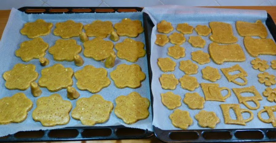Estas son las dos fuentes de galletas ya horneadas. Como ves, se pueden hacer las formas que quieras, aunque hay que tener cuidado ya que las más finas se harán antes que las más gruesas. Si las haces todas iguales mucho mejor.