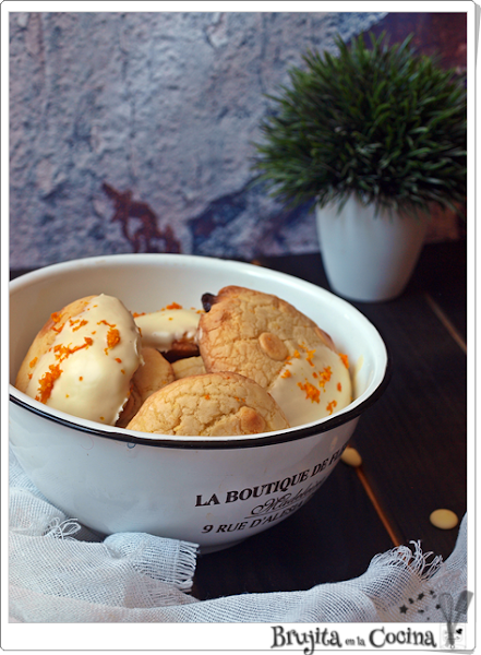 Cuando vi estas de chocolate blanco y naranja la combinación me pareció perfecta, la receta original lleva un interior de crema de cacahuete que yo no le puse, no tenía y me pareció excesivo pero en otro momento probaré lo original.
