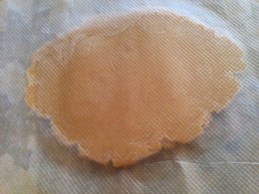 Una vez que has ligado la masa, sepárala en pequeñas porciones y ponlas entre papel antiadherente.