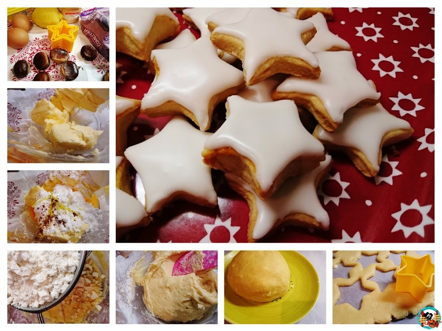 1.- En un bol mezclamos la mantequilla con 1 huevo, la ralladura de limón y 150 gr de azúcar glas, hasta conseguir una mezcla uniforme. Pelamos las castañas y las picamos en trozos pequeños, agregamos las castañas y la canela. Añadimos la harina y mezclamos con una espátula, cuando la masa vaya tomando forma de una masa, volcamos sobre una superficie cubierta de harina y amasamos con las manos hasta formar una bola uniforme.