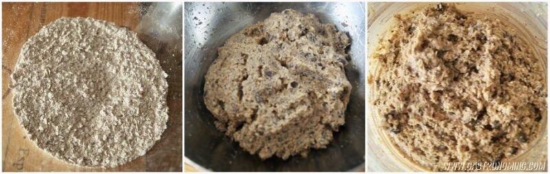 3. Una vez bien mezclado, agregamos a este bol, la mezcla del primer paso, removemos con las manos, incorporando poco a poco con movimientos envolventes. Dejamos reposar al menos una hora en frío.